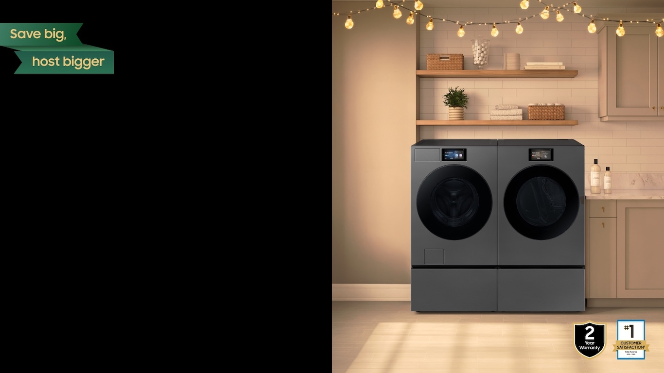 ≡Between February 6, 2025 – December 31, 2025 (“Promotional Period”), at participating retailers only, purchase an eligible Samsung appliance (“Qualifying Purchase”), submit a valid offer claim form at samsung.com/us/shop/promotions/warranty-offer-2025 and receive a one year warranty extension from the original one year manufactures warranty. Must complete and submit a Reward Redemption Form claim form and documentation online within 90 days of promotion end date for validation; once validated, one year warranty extension will be applied. See Eligible Categories and products, and additional offer Terms and Conditions at samsung.com/us/shop/promotions/warranty-offer-2025. Eligible Categories are: Refrigerators, Ranges, Dishwashers, Wall Ovens, Cooktops, Range Hoods, Over-the-Range Microwaves, Washers, Dryers. All other categories are ineligible.