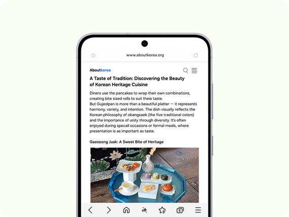 11Availability of features may vary by device model, language and browser version. Requires internet connection and Samsung Internet version 28.0 or later. Translation and summarization accuracy may vary depending on content complexity.