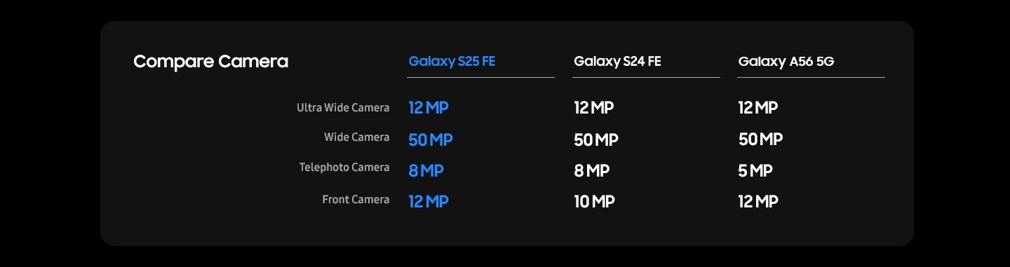 Is the camera better than Galaxy S24 FE?While the main cameras are the same, Galaxy S25 FE features an upgraded 12 MP front camera (up from 10MP), delivering clearer selfies and sharper video calls.2