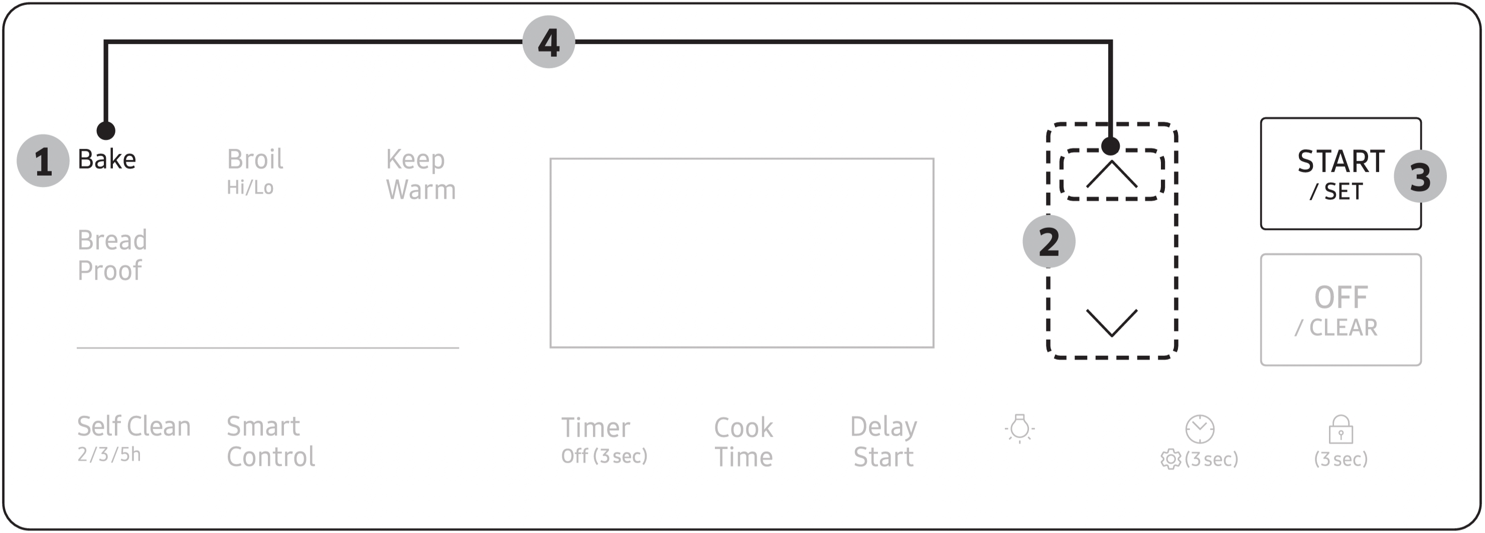 - Press Bake and Up simultaneously for 3 seconds to display "SAb". Once "SAb" appears, the oven control no longer beeps or displays any further changes.