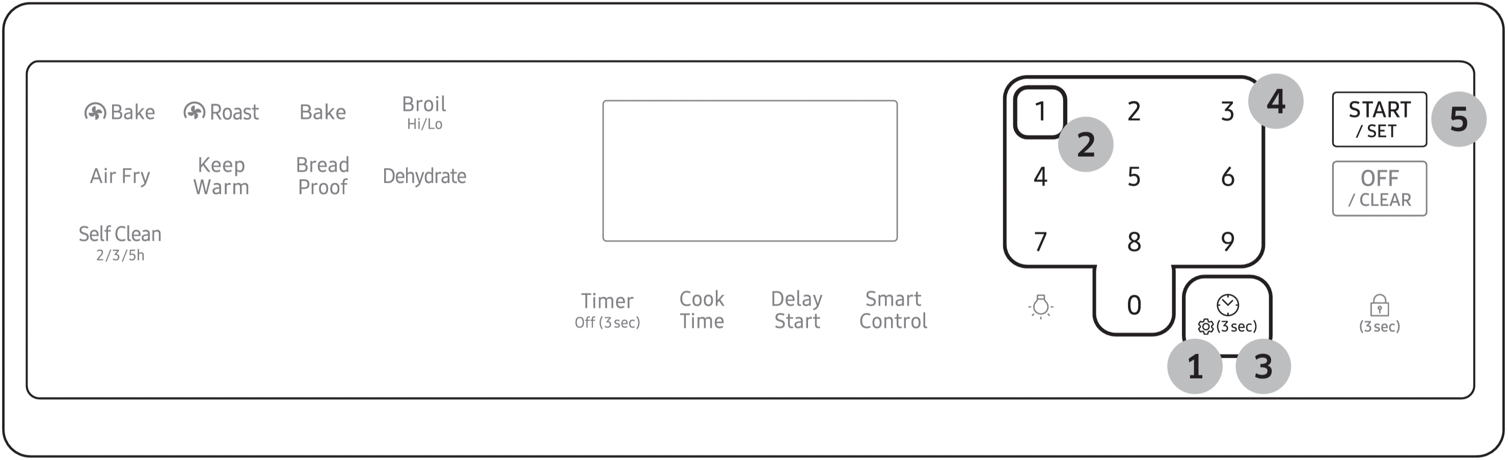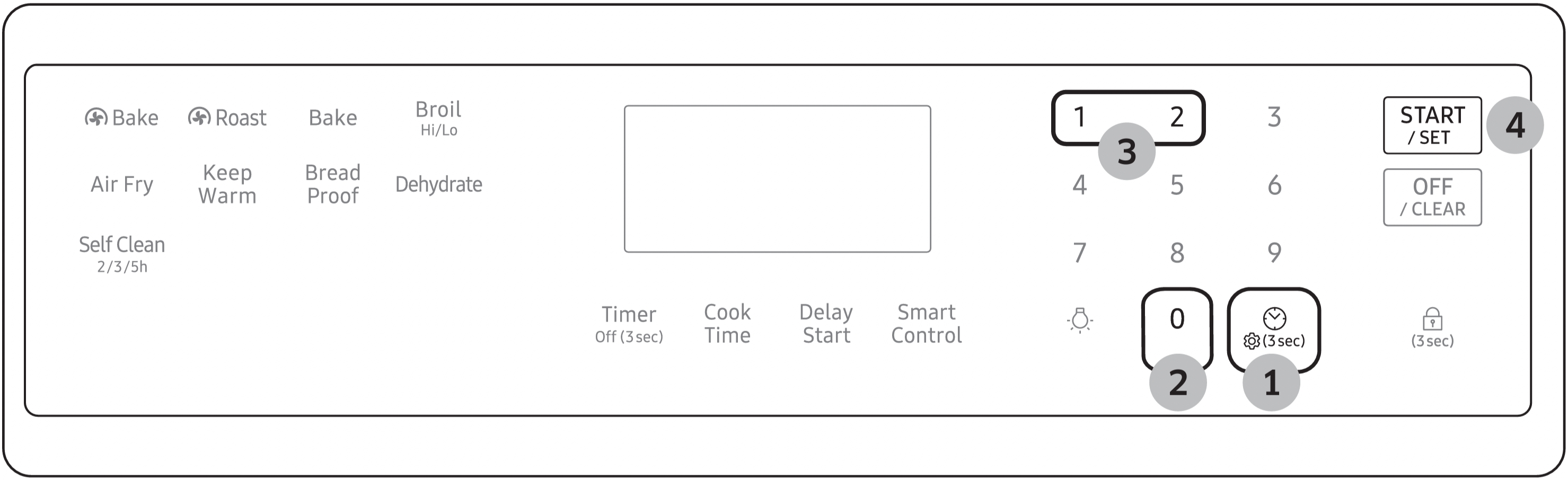 - Press Bake and Number 1 simultaneously for 3 seconds to display "SAb". Once "SAb" appears, the oven control no longer beeps or displays any further changes.