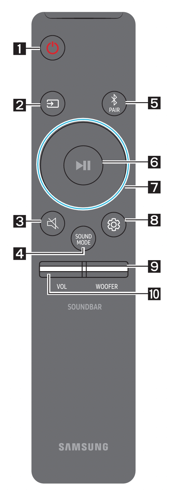 Front Panel / Top Panel of the Soundbar and How to Use the Remote Control: HW-T510