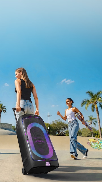 Get the party started with high power audio. With the built-in battery, you can take the Sound Tower almost anywhere the party travels to, even outdoors. Sing songs on Karaoke mode or pump the bass to set the vibe. Rain or shine, enjoy year-round outdoor entertainment.