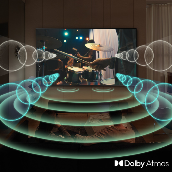 Keep your ears on the action with built-in Dolby Atmos™®. You’ll hear 3D surround sound that follows the movement on screen using our incredible virtual top channel audio—putting you right in the middle of the car chase, stampede or party scene.