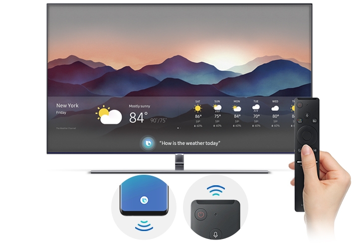 Meet Bixby, your intelligent voice assistant in your new 2018 QLED TV. Bixby makes it easy to search for content, flip channels, or even ask questions such as the current weather using only your voice. Just click voice recognition on your remote or mobile, and Bixby is at your command.*