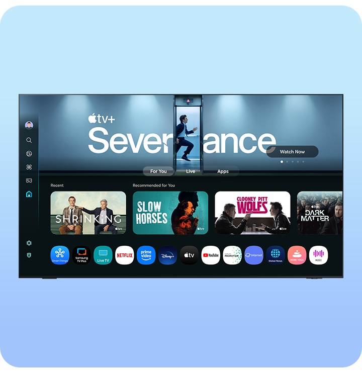 *Images simulated for illustration purposes. Any changes in UI or appearance and design specifications may occur without prior notice. UI may vary by region. Works on select TV controls. Samsung Account required for network-based smart services, including streaming apps and other smart features. Separate computer, mobile or other device may be necessary to create/log in to Samsung Account (free to download and create). Without Account log in, only external device connections (e.g., via HDMI) and terrestrial/over-the-air TV (only for TVs with tuners) available. Bixby voice commands recognize English (US/UK), French, Spanish, German, Italian, Chinese, and Korean. Not all accents, dialects and expressions are recognized.