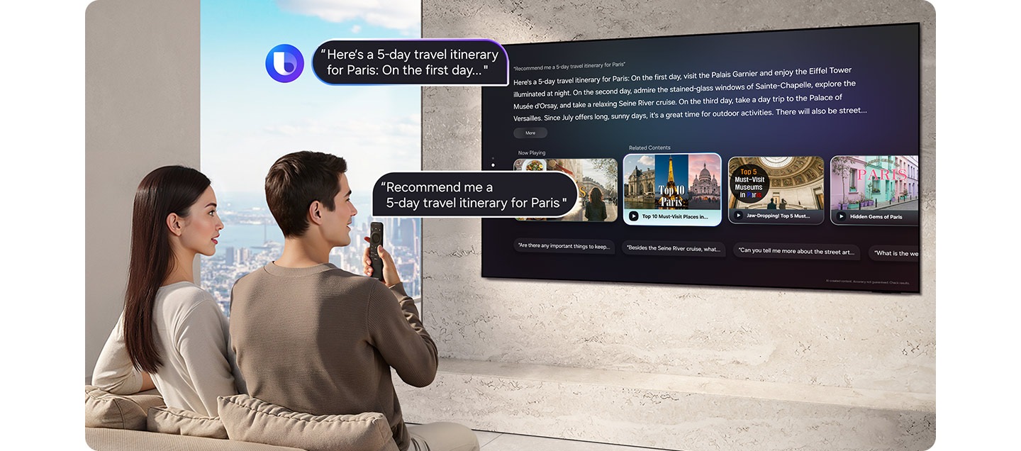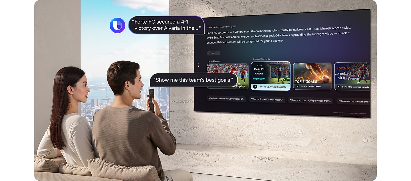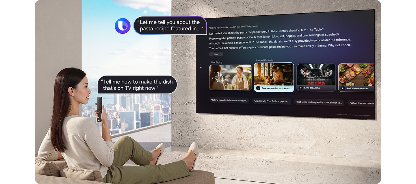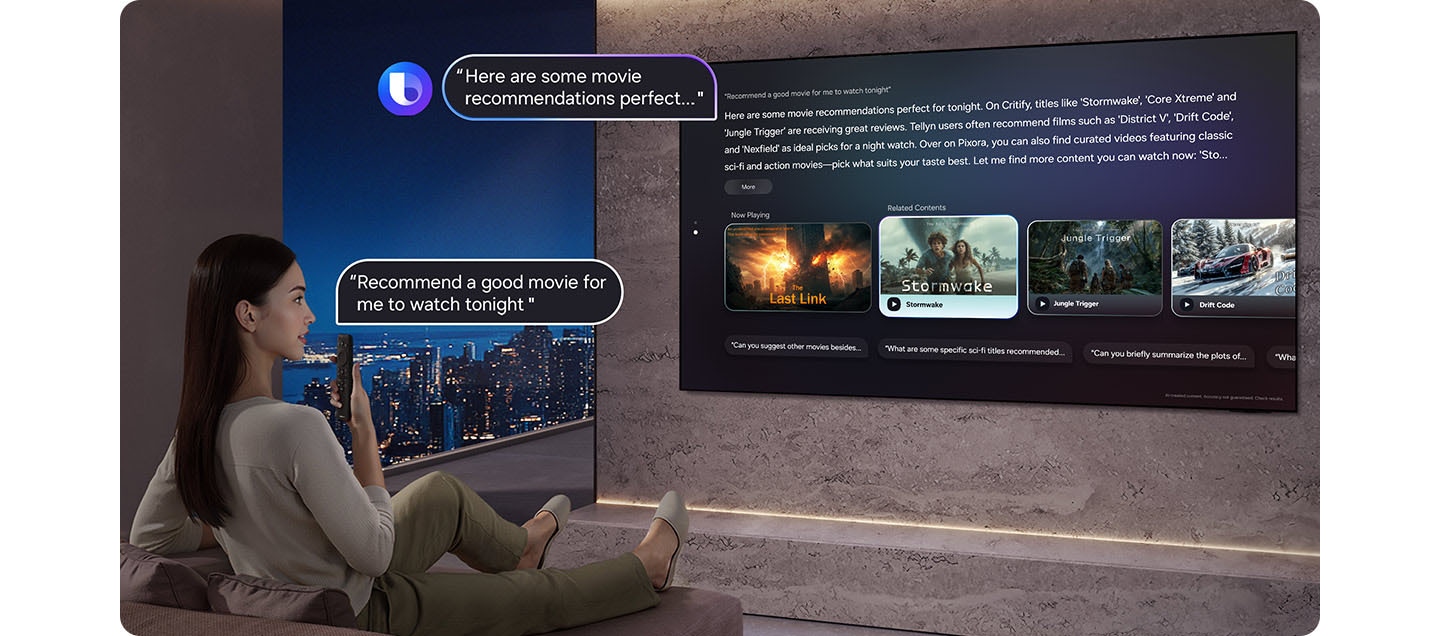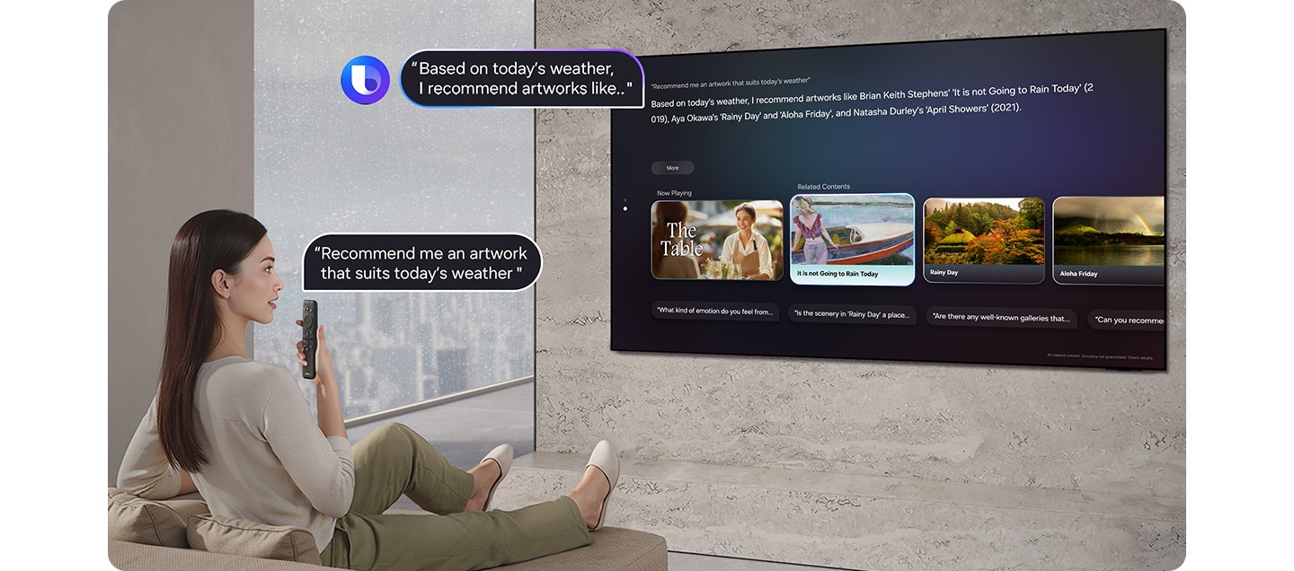 Intelligence begins with a chat. Smarter Bixby* understands you and makes it easy and intuitive to find answers to everything through your TV. It recognizes your exact needs, thanks to real-time contextual understanding, and intelligently answers anything you ask.