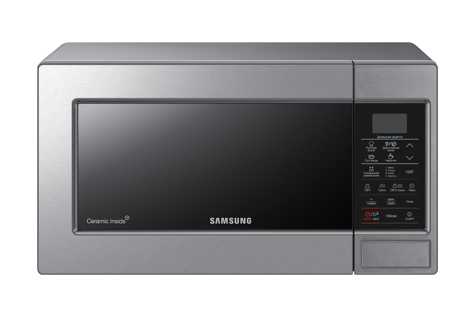 В микроволновых печах Samsung используется функциональное керамическое покрытие внутренних стенок камеры. С идеально гладкой керамической эмали легче легкого удалять жир и другие загрязнения.