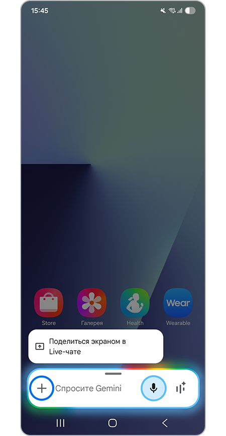 Используйте совместный доступ к экрану или камере, чтобы Gemini мог видеть содержимое вашего устройства и предоставлять мгновенную контекстную поддержку.