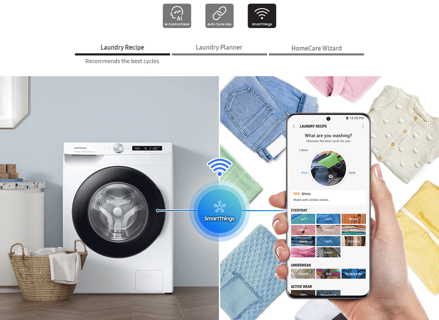 * Испытания проведены на модели WW6100A по сравнению с моделью Samsung WW6100R. Экономит 50 % времени за цикл стирки хлопчатобумажной ткани (40 ℃, неполная загрузка), сохраняя производительность стирки в пределах ±5 %. На основе данных Intertek.
