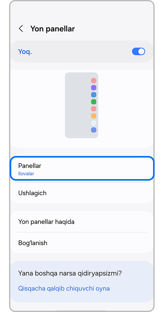 Afsuski, Edge paneli barcha qurilma modellarida qo'llab-quvvatlanmaydi. Ushbu funksiyadan qurilmangiz modelida foydalanish mumkinligiga ishonch hosil qilish uchun quyidagi amallarni bajaring.