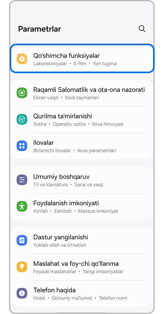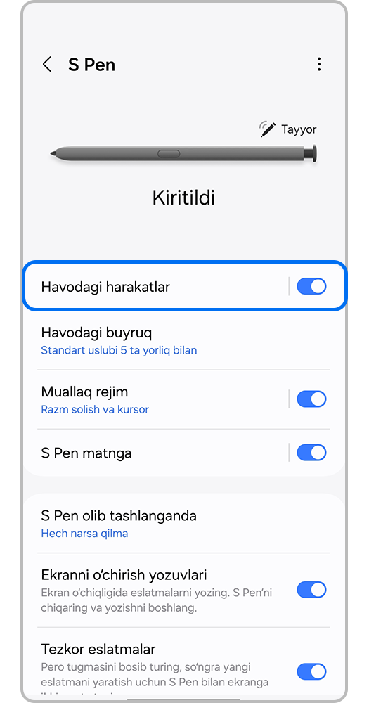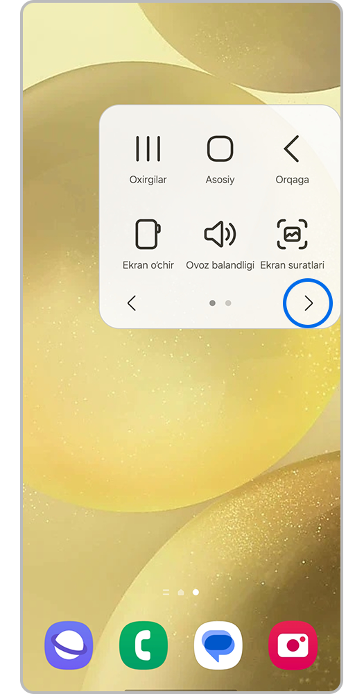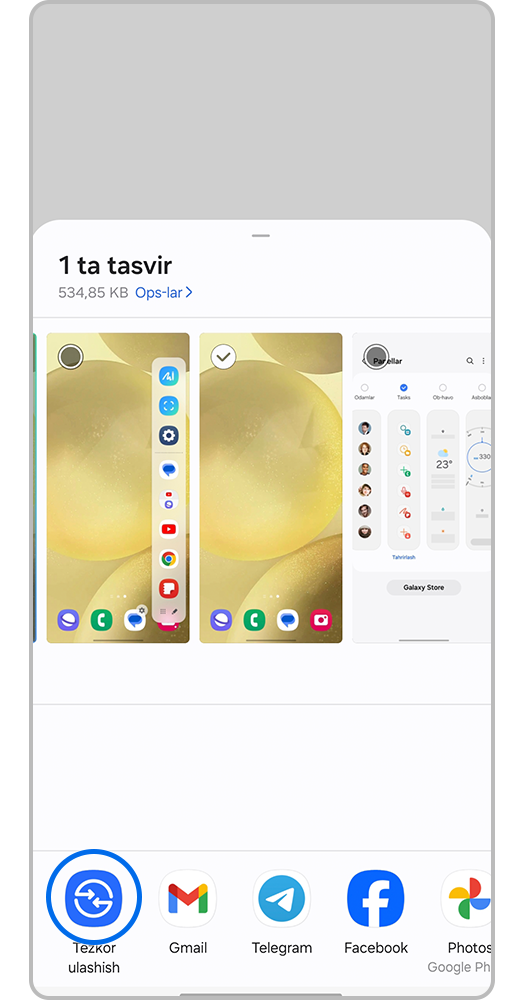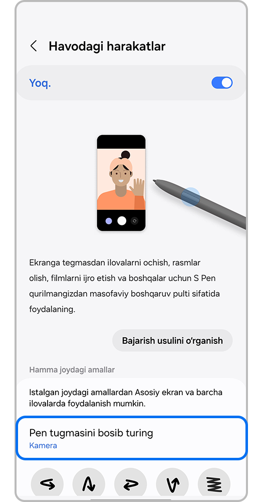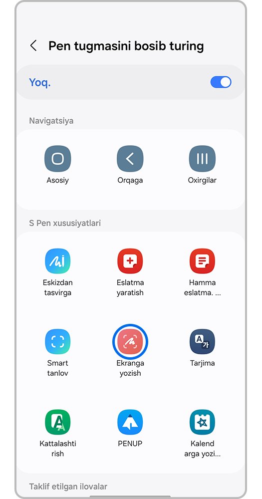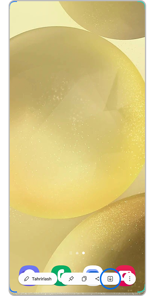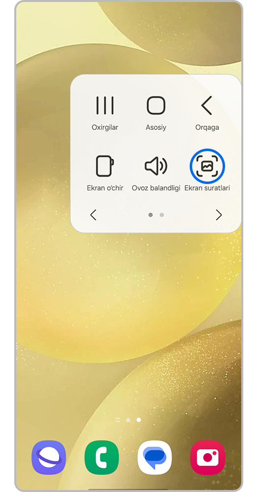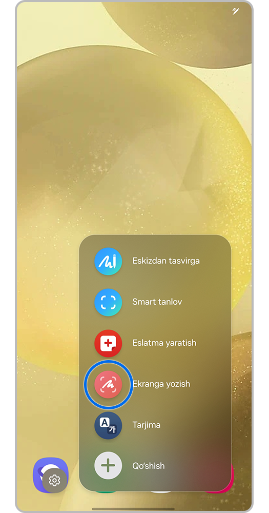 - kaft bilan, S Pen qalam yoki yordamchi menyu orqali — ushbu usullarning mavjudligi Samsung Galaxy modelingizga bog'liq.