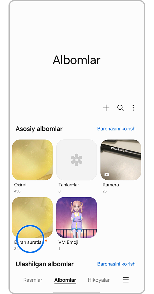 Olingan skrinshotlarni Galereya ilovasida yoki Mening fayllarimda ko'rishingiz mumkin. Ular Rasmlar/Screenshots yoki Rasmlar/ScreenCapture papkasida joylashgan.