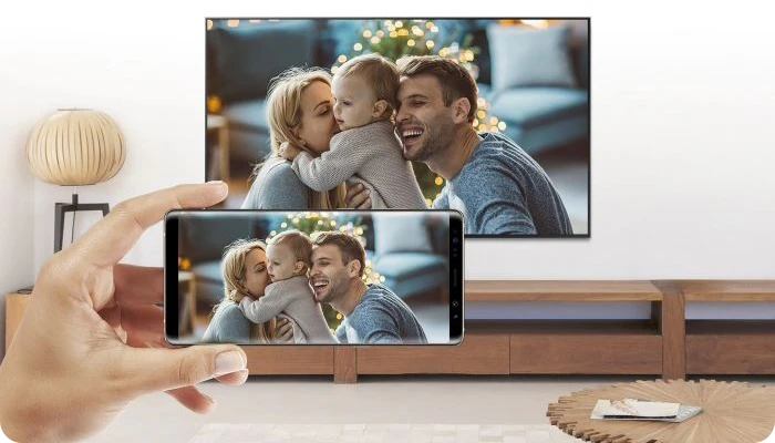 Samsung mobil qurilmangizni Samsung Smart TV ga ulab, sevimli rasmlaringiz, videolaringiz, taqdimotlaringiz va o'yinlaringizni katta ekranga olib chiqishingiz mumkin.