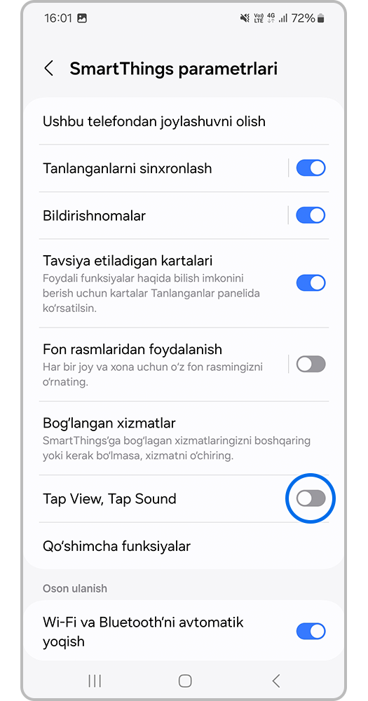 Smartfoningizda televizor ulangan SmartThings ilovasi o'rnatilgan bo'lishi kerak.