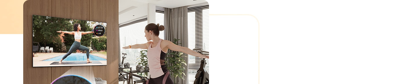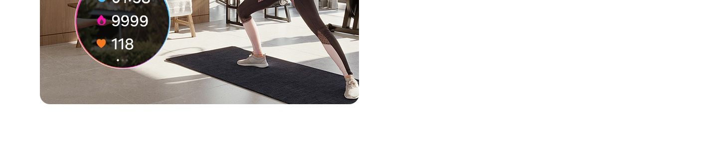 Natijalaringizni kontent tomosha qilish vaqtida samarali kuzatib boring. Galaxy Watch televizorga ulanganda yurak urishi tezligi va sarflangan kaloriya miqdori kabi real vaqt rejimidagi ma’lumotlar ekranda ko‘rsatiladi.9