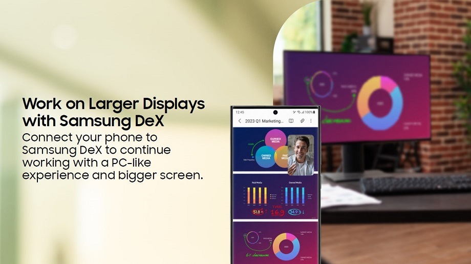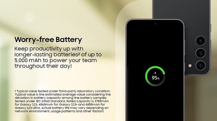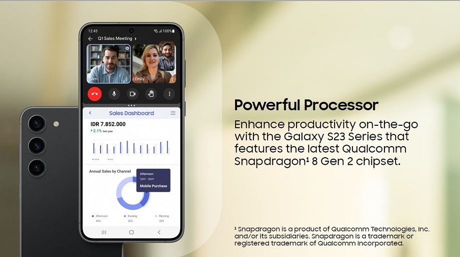 The Samsung Galaxy S23 series features the latest Qualcomm Snapdragon2 8 Gen 2 chipset — a cutting-edge 4mm processor — and a smarter NPU that’s designed to power productivity. Given that the modern workforce places great emphasis on hybrid and remote working, the Galaxy S23 series is the perfect phone for business as work can be completed quicker and more efficiently1. Additionally, the new Application Protocol allows you to create and share epic work from wherever you are!