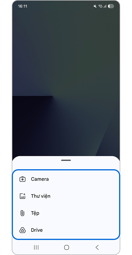 Bạn có thể bắt đầu trò chuyện với Gemini bằng cách đính kèm một hình ảnh hoặc tệp liên quan đến thông tin bạn muốn hỏi.
