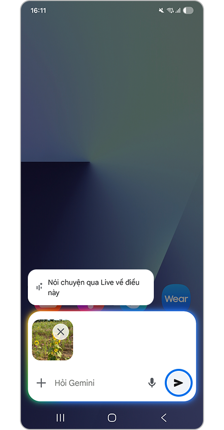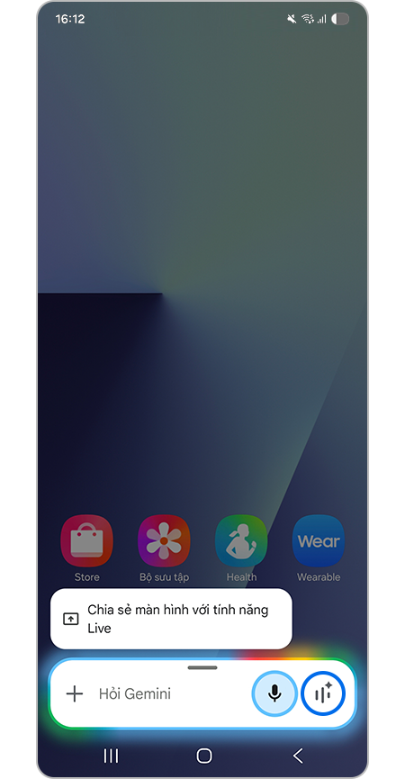 Hỏi Gemini về bất cứ điều gì bạn thấy bằng cách chia sẻ camera hoặc màn hình của bạn trong các cuộc trò chuyện, thông qua tính năng Live của Gemini. Tính năng sẽ giúp ích cho bạn để nhận phản hồi tức thì về tài liệu, sản phẩm hoặc ý tưởng trong khi trò chuyện trực tiếp.