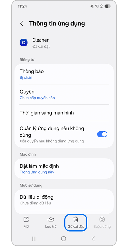 - Ứng dụng "Cleaner" là ví dụ được tạo ra nhằm mục đích minh họa và không đại diện cho ứng dụng thực tế hoặc hiện có.