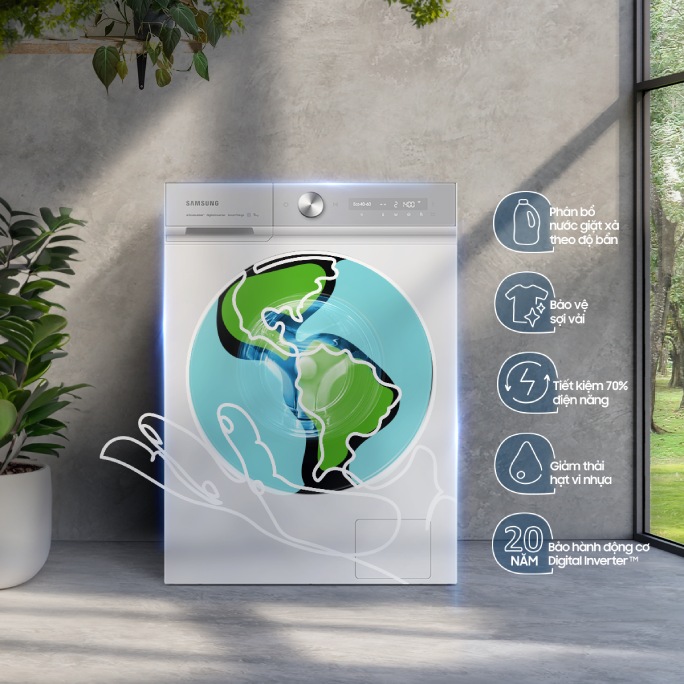 Thấu hiểu những hành động nhỏ mỗi ngày cũng góp phần đem đến thay đổi to lớn cho môi trường, máy giặt Bespoke AI đem đến 5 tiết kiệm xanh chỉ với “1 chạm” mỗi lần giặt; giúp tiết kiệm cho bản thân, cho gia đình và cho Trái Đất thêm xanh.