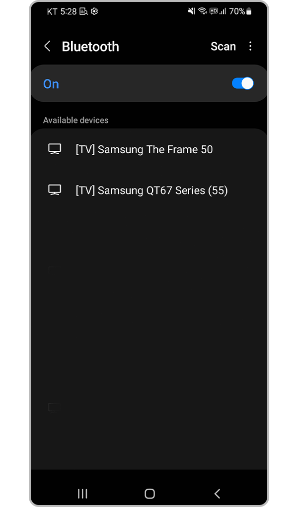 Enable the Bluetooth function to check that the initialization has been completed normally. When the Bluetooth function of your mobile device is turned on, the Rotation Accessory will appear in the list of connectable devices.
